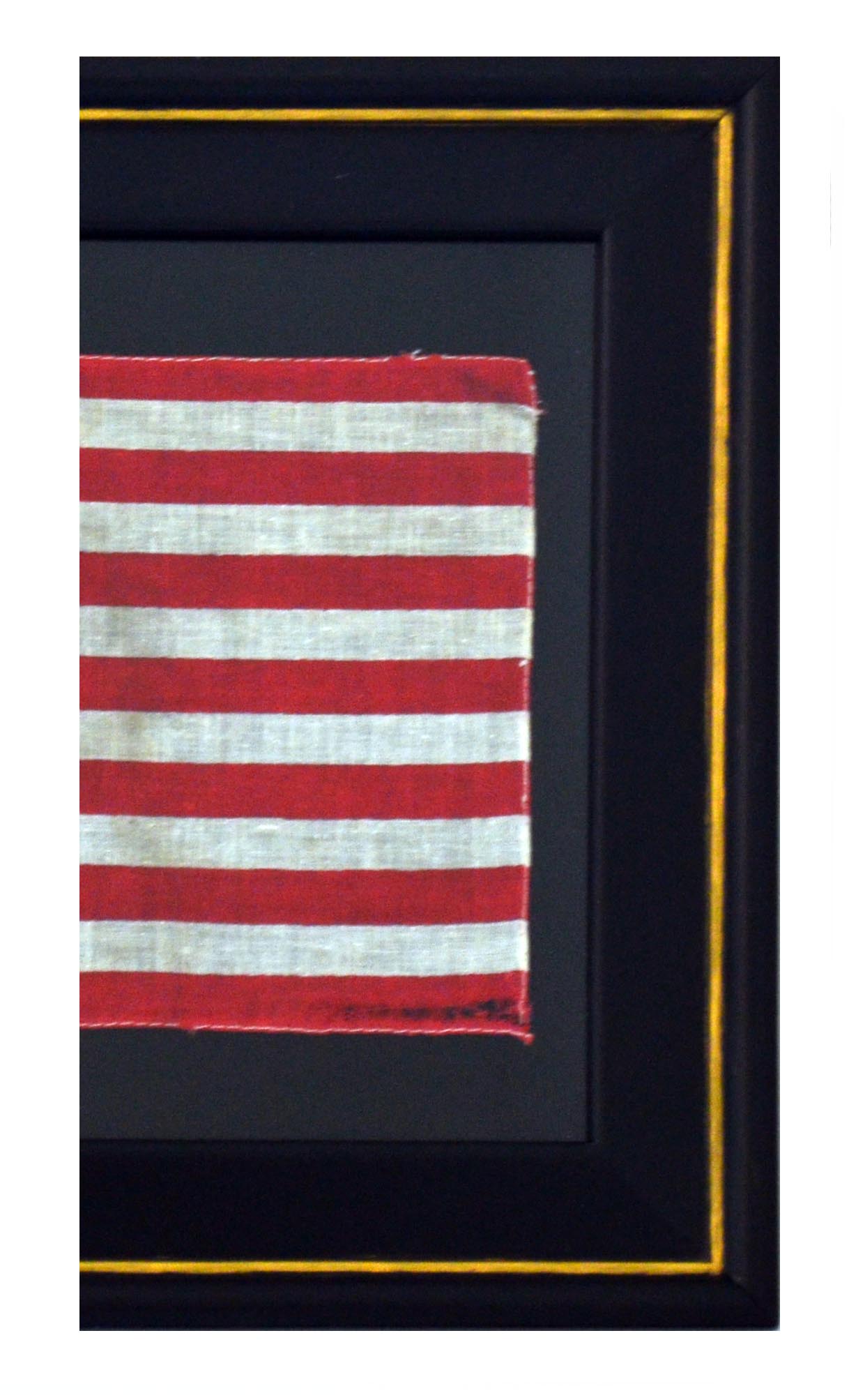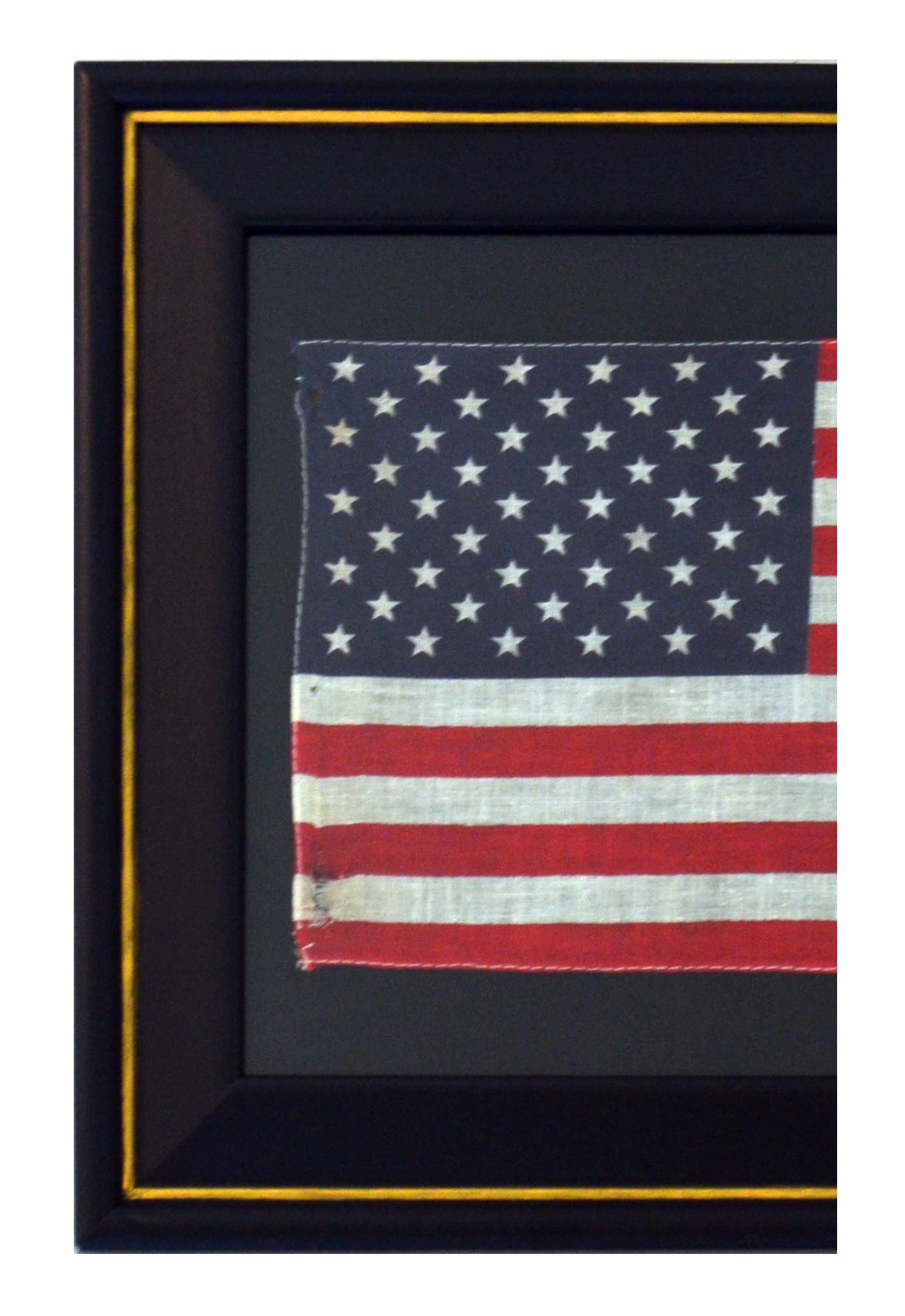 Condition is fair, bold, crisp colors, fabric separation on the right side bottom fly, some separation along the hoist, flag is pressure mounted, frame is made of composite material-black with gold color trim