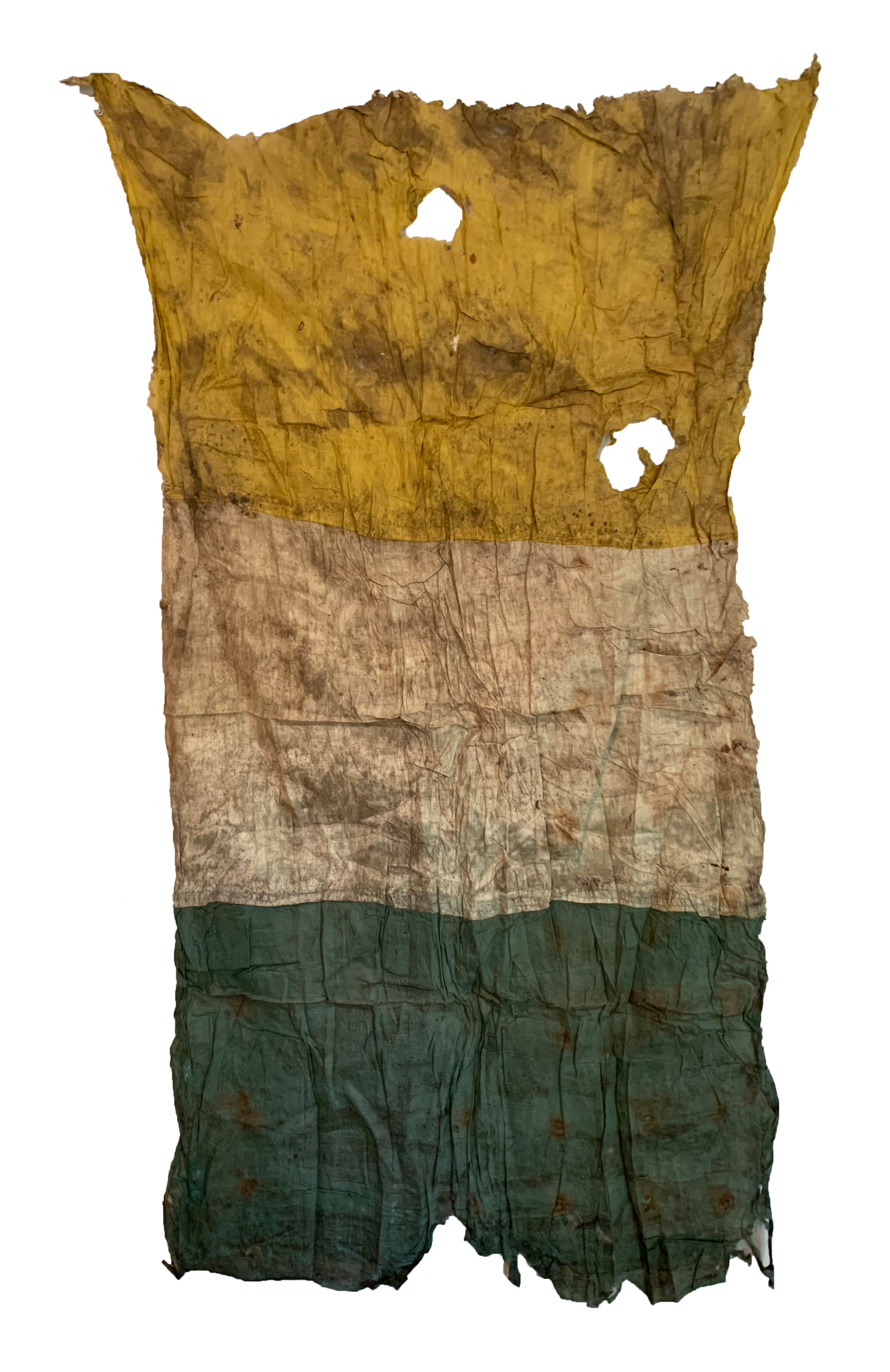 Two battle flags believed to have originated in Dublin, Ireland in 1918, during the early days of the Irish War of Independence; accompanied by an original identification tag reading:
