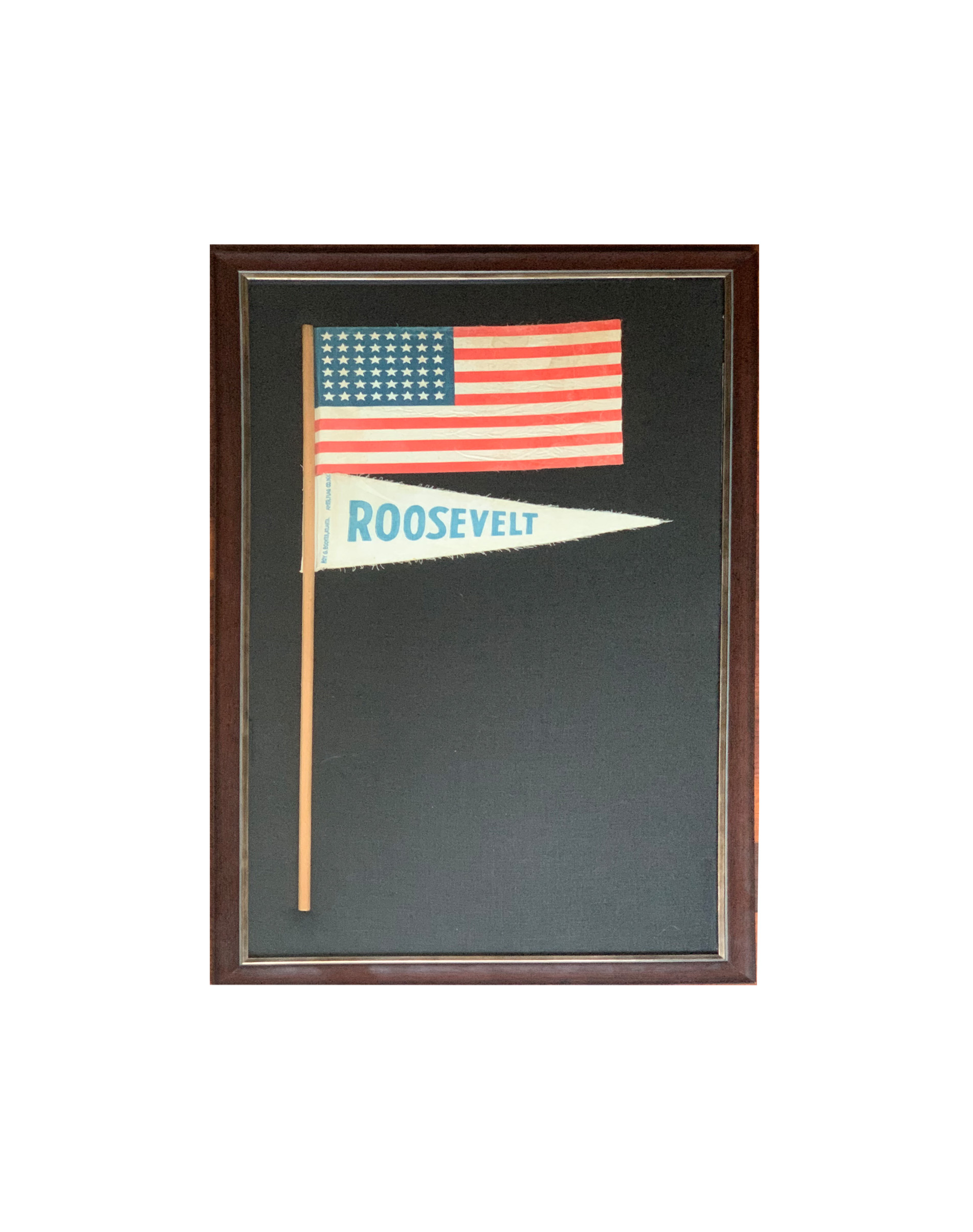48 STAR AMERICAN PARADE FLAG AND ROOSEVELT PRESIDENTIAL CAMPAIGN PENNANT ON THE ORIGINAL WOOD STAFF, 1932-1944