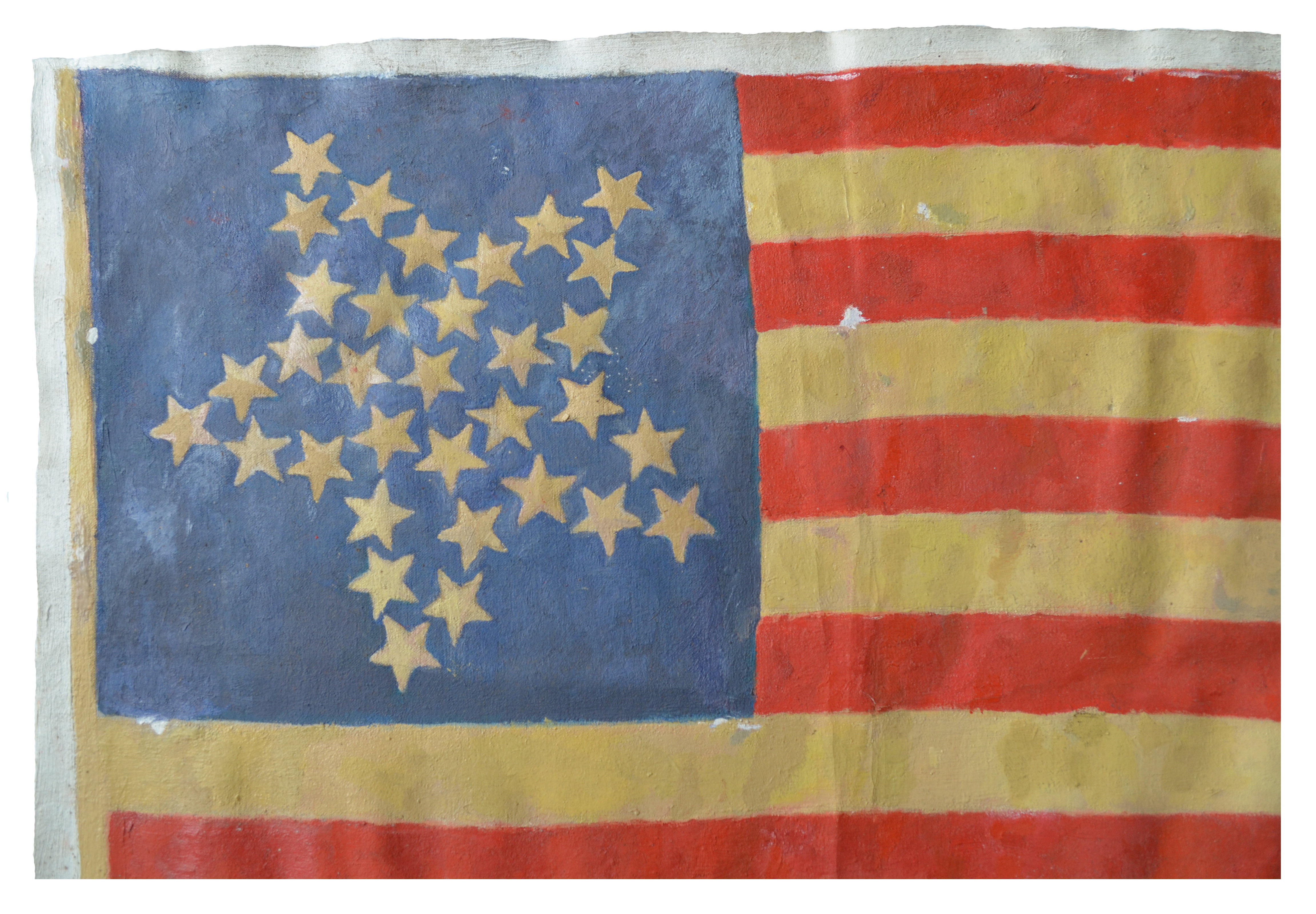 33 STAR FLAG WITH A GREAT STA PATTERN PAINTED / OIL ON CANVAS BY "MASTROGIACOMO"
