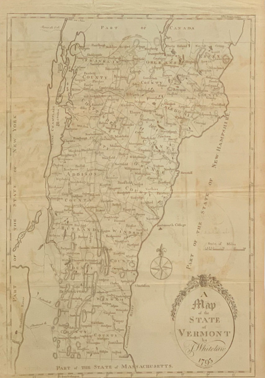 James Whitelaw, a surveyor and mapmaker, published the most accurate maps of Vermont up to the time when he took the position as Vermont State Surveyor General in 1787. This map was published in 1793 and was included in the 1794 edition of "The Natural and Civil History of History" by Samuel Williams.